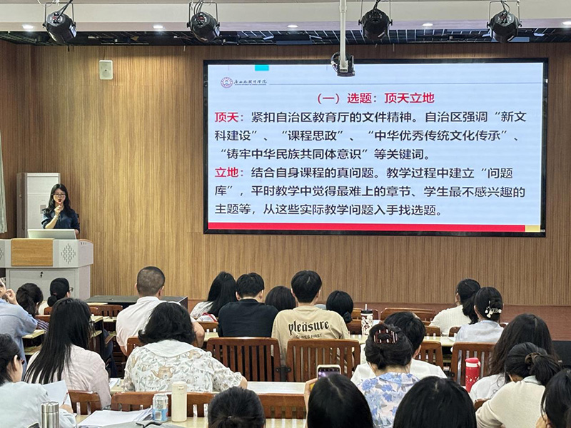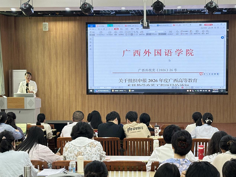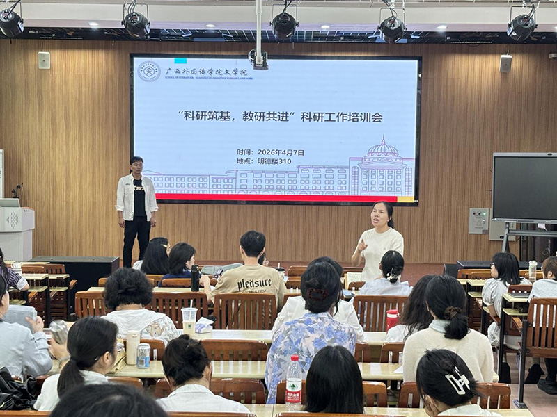 为进一步夯实文学院教师科研基础,提升教学改革与科研课题申报质量,推动教学与科研深度融合、协同发展,4月7日下午,文学院“科研筑基,教研共进”科研工作培训会顺利召开。本次会议由文学院科研副院长覃健博士主持,全体教师齐聚一堂,聚焦教学改革工程项目与科研课题申报的核心要点、实操方法与经验技巧,展开了一场务实高效的专题培训。