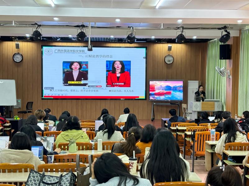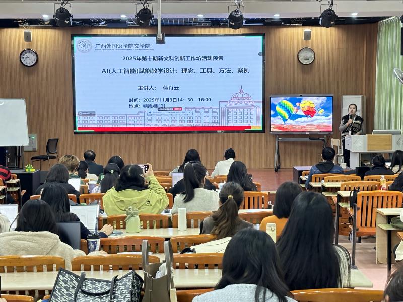 11月4日下午,文学院在明德楼101报告厅举办第十期新文科创新工作坊活动,由文学系主任蒋肖云博士、副教授主讲“AI(人工智能) 赋能教学设计:理念、工具、方法、案例”的精彩讲座。此次讲座聚焦人工智能在教学设计领域的应用,为我院教师对人工智能的运用提供了全面且深入的指导,助力他们在今后的课堂上,结合人工智能创新性开展教学工作。