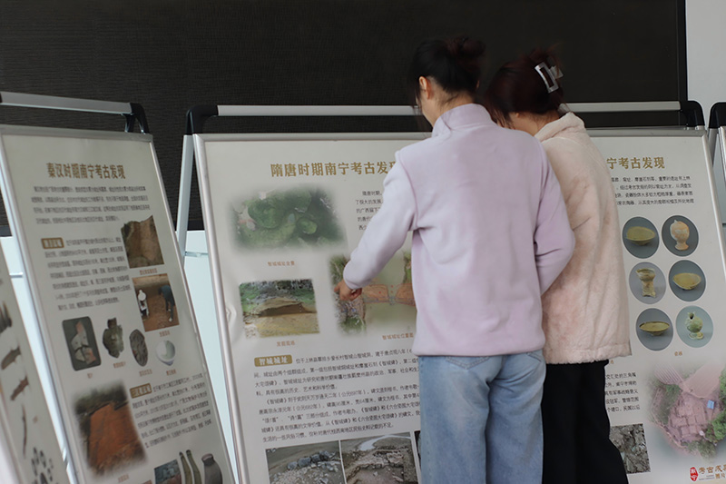 本次活动深入挖掘顶蛳山遗址考古成果,创新打造党建育人实践平台。现场设置南宁史前文化主题美陈展览区,通过12块科普展板系统展示顶蛳山遗址出土的炭化稻、骨器、陶器等文物信息。学生党员志愿者充分发挥先锋模范作用,以考古发掘故事为切入点,深入浅出地讲解南宁先民的生产生活智慧,切实增强师生对本土历史文化的认知度和认同感。