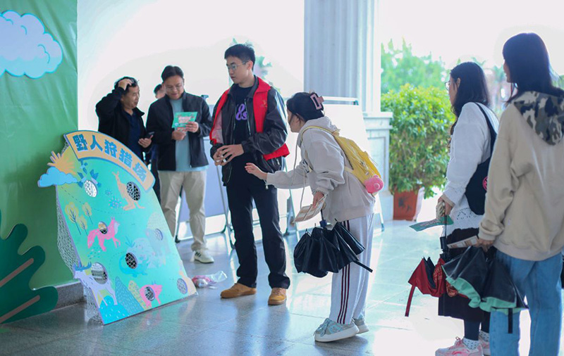 活动创新设置多项互动环节,以实践体验激活地方文化传播活力。集章互动区以南宁历史文化知识点为主,师生通过扫码答题、拍摄文化主题照片、体验模拟狩猎游戏等方式收集印花,兑换博物馆定制文创纪念品。这一形式既深化了文化记忆,也让地方文化以更接地气的方式走进师生生活。