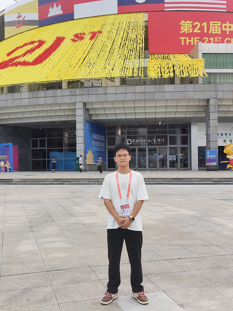 除了学业上的优异表现,他还积极参与社会实践活动,展现出了强烈的社会责任感。他是第 21 届东盟博览会的志愿者,以热情的服务和专业的态度,为这场国际盛会贡献了自己的力量。在“三下乡”社会实践中,他深入调研,了解社会需求,将所学知识运用到实践中,为乡村振兴贡献自己的一份力量。这些经历不仅丰富了他的大学生活,更让他在实践中锻炼了自己的能力,培养了自己的团队协作精神和社会责任感。