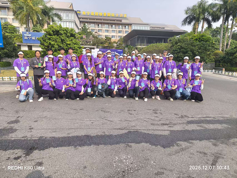 12月7日清晨,2025年南宁马拉松在民族广场鸣枪开赛,3.6万名来自国内外的跑者齐聚绿城,在邕城冬日的暖阳中沿民族大道、青秀山、邕江两岸的绝美赛道奋力奔跑,用脚步丈量“半城绿树半城楼”的生态之美,用毅力书写逐梦华章。在这场集竞技、科技与人文于一体的盛会中,文学院志愿者团队以青春之名赴约,在20km补给站筑起一道温暖坚实的服务防线,用专业与热忱为赛事注入文明暖流,成为赛道上最动人的风景线。