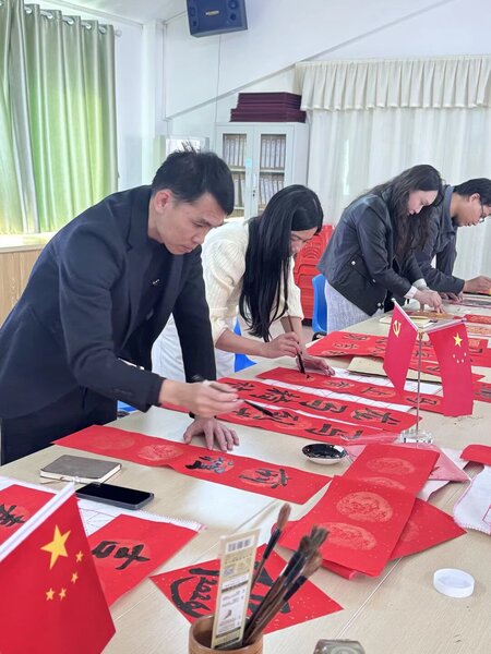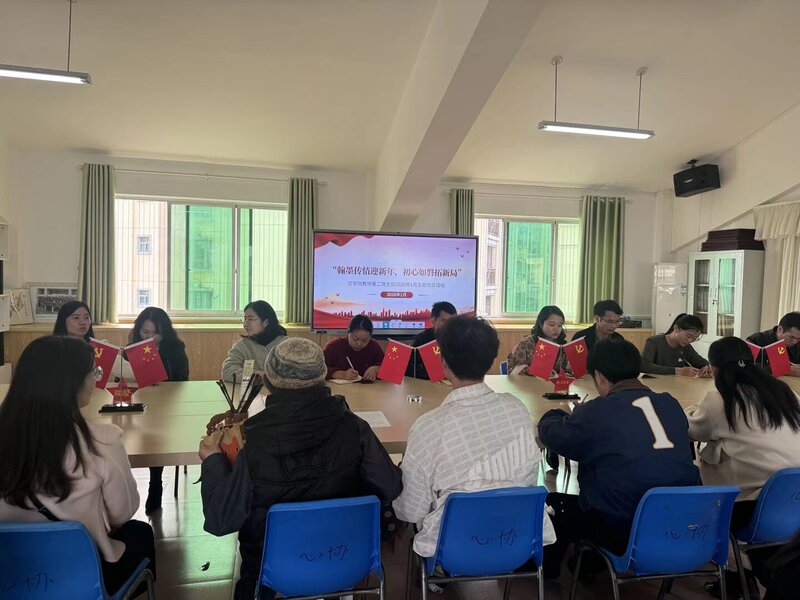为深入学习贯彻国家主席习近平2026年新年贺词精神,传承中华优秀传统文化,增强党员教师的初心使命意识,1月17日下午,文学院教师第二党支部联合教师第一党支部,在明德楼522党员活动室成功举办了“翰墨传情迎新年,初心如磐拓新局”主题党日活动。
